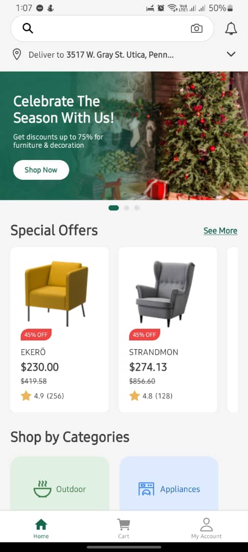 HomeHaven is an e-commerce app UI. Built with React Native, Expo, and twrnc, it showcases a visually appealing interface for browsing home decor and furniture.